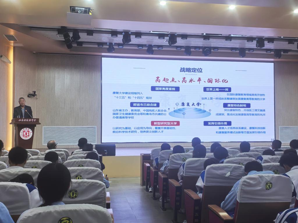 授牌儀式結束后,董爾丹以“康復內涵、康復問題、康復技術、康復大學”為主題,為省實驗中學師生做了科普知識講座,激發(fā)了同學們對大健康領域的濃厚興趣與探索熱情,點燃了同學們?yōu)楸U先窠】怠崿F健康中國而投身康復事業(yè)的激情與夢想。