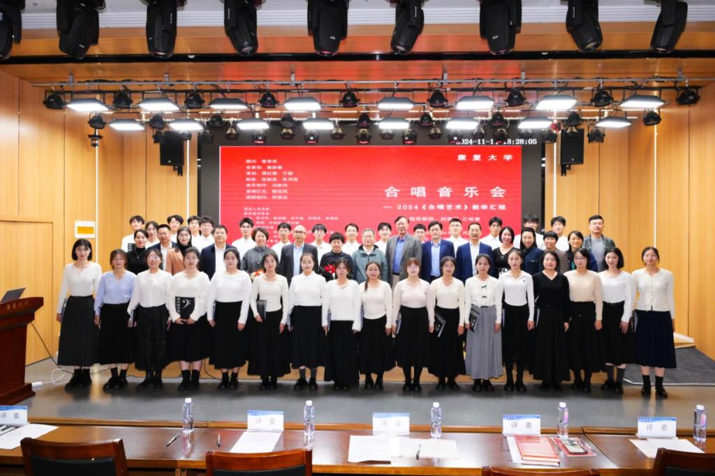 11月14日下午,康復大學首屆大學生合唱音樂會暨“合唱藝術”課程匯報演出在學部樓106報告廳上演。校領導姜宏、劉奇跡、侯典峰、安琨出席音樂會,與在校師生共同觀看了本場演出。