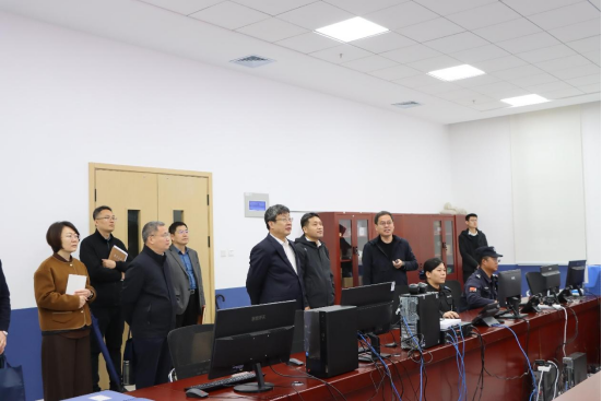 劉軍一行首先來到行政辦公樓警務室和校門口,詳細檢查了解了校園監控系統、報警系統、警校聯動機制和值班值守、人員登記、校園巡查巡邏、安全防護器械配備等情況。隨后來到公共教學實驗樓,對危險化學品管理、消防設施配備、消防通道暢通等情況進行了詳細的檢查和詢問。在學生宿舍樓和北區餐廳,重點檢查了值班值守、消防通道、門禁設施、消防設施、安全用電等情況。