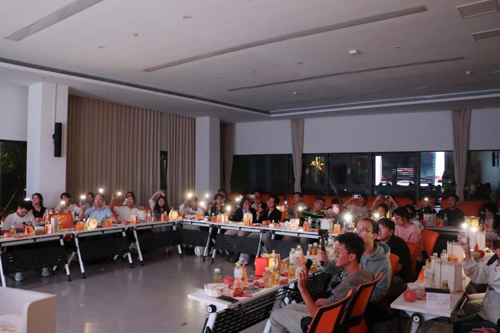 隨后的“佳節頌歌會”為活動注入更多情感共鳴。從經典老歌到流行金曲,從獨唱到合唱,大家用歌聲傳遞情感、用旋律連接心靈,現場掌聲不斷、暖意融融。當《但愿人長久》的熟悉旋律緩緩響起,安琨副校長與師生們共同起身合唱,悠揚的歌聲在夜空中回蕩。至此,這場兼具文化底蘊、情感溫度的中秋活動,在溫暖與感動中圓滿落幕。