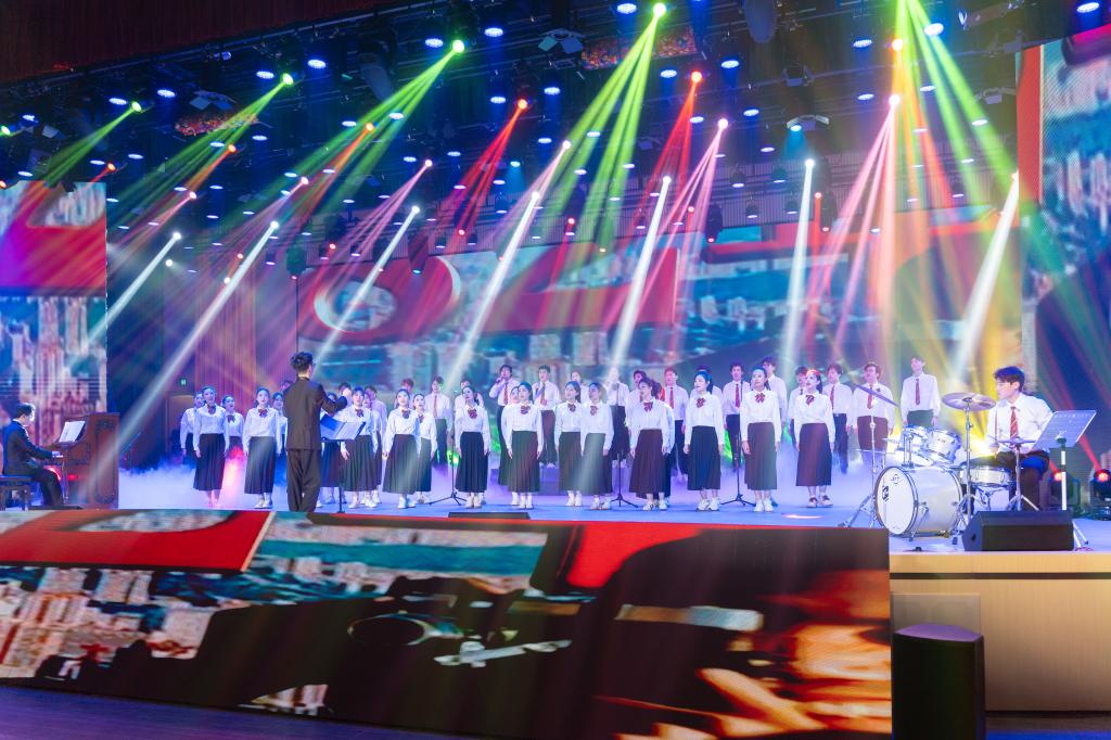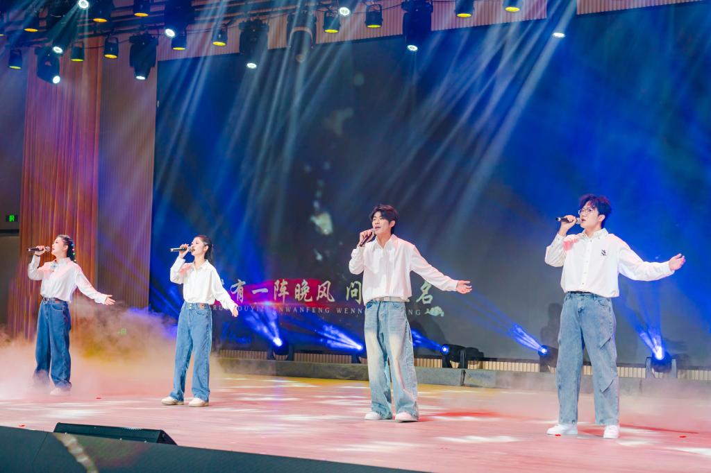 第二篇章“家國同心 聲頌時(shí)代”抒發(fā)家國情懷與時(shí)代擔(dān)當(dāng)。民樂合奏《盛世國樂》以多元樂器演繹出恢弘悠遠(yuǎn)的古典意境,盡顯中華優(yōu)秀傳統(tǒng)文化的深厚魅力;舞蹈《紅馬》以優(yōu)美靈動的舞姿演繹古典韻律,將東方美學(xué)意境展現(xiàn)得淋漓盡致;歌曲《銘記》用深情婉轉(zhuǎn)的唱腔傳遞歷史回響,激勵(lì)青年一代不忘初心、牢記使命;搖滾樂《祖國》則以充滿青春活力的方式表達(dá)了對祖國最熾熱的愛,激昂的節(jié)奏、熾熱的情感點(diǎn)燃全場師生的愛國熱情。