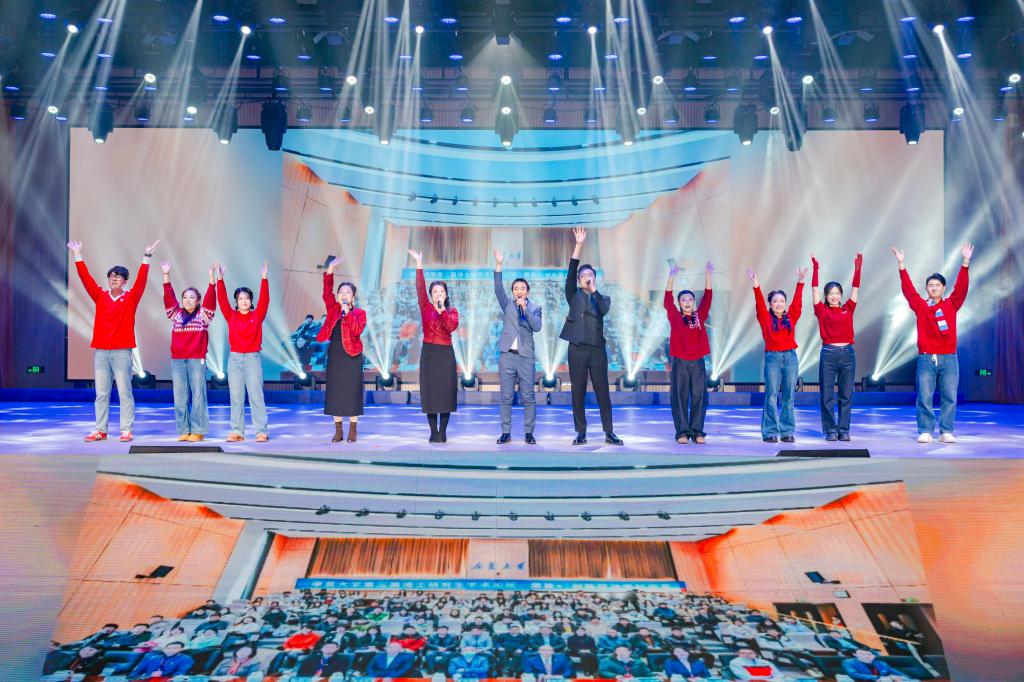 第三篇章“聚力同行 共赴新程”凝聚起全校上下的奮進(jìn)力量與共同愿景。歌曲串燒《研路生花》以輕快旋律勾勒出研究生學(xué)子科研路上的奮斗足跡,彰顯青春擔(dān)當(dāng);啦啦操《舞出你的青春》動作活力四射、隊(duì)形整齊劃一,生動展現(xiàn)出新時(shí)代青年的蓬勃朝氣;獨(dú)唱《世界贈予我的》,以純凈且富有穿透力的嗓音寄托對未來的美好憧憬;合唱《我們都是追夢人》將晚會氛圍推向頂峰,激昂的歌聲唱響了全體康大人投身健康中國建設(shè)的心聲。