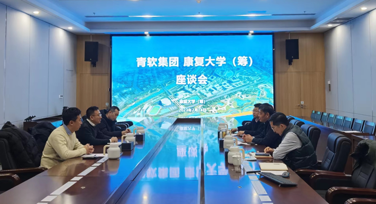 2月14日下午,青軟創新科技集團股份有限公司董事長劉全一行3人來校洽談交流。康復大學(籌)領導小組成員、臨時黨委委員王偉以及黨政辦公室、教務部相關同志參加會談。