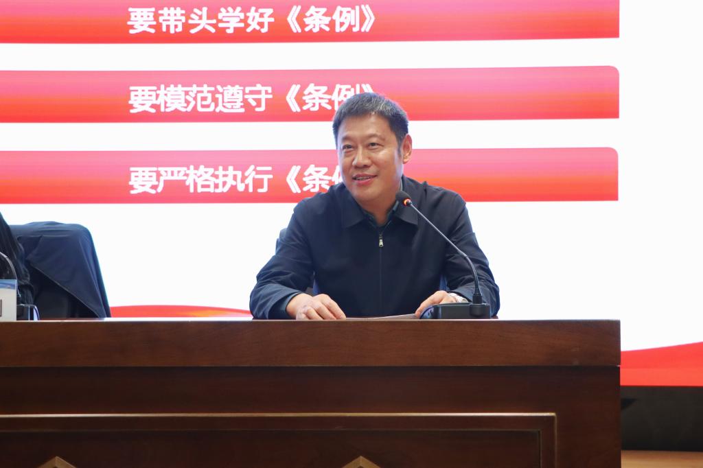 4月24日上午,學校邀請省紀委隋玉利同志為全體黨員作《學紀 知紀 明紀 守紀 切實增強紀律意識 筑牢紀律底線》專題輔導。從《條例》的修訂背景、重要意義、整體內容以及具體貫徹實施要求等方面,作了系統(tǒng)的梳理解讀。